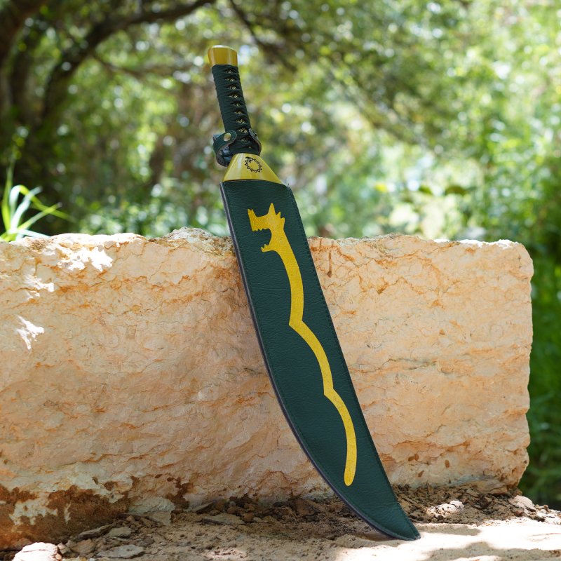 חרב בגודל 72 ס"מ ועשויה פלדה עם כיסוי דמוי עור ללהב בהדפס דרקון.